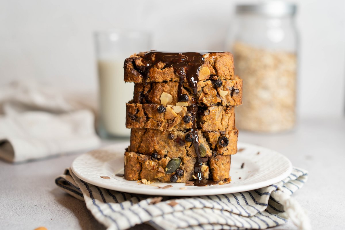 Es darf außerdem experimentiert werden: Für eine fruchtige Note, ersetze die Zartbitter-Schokolade mit Heidelbeeren oder mische gehackte Walnüsse in den Teig. Die Kombination mit Erdnussbutter ist auch unheimlich spannend, da meiner Meinung nach Bananen und Erdnussbutter eine der harmonierendsten Kombinationen sind, die es beim Backen gibt. Dir sind also absolut keine Grenzen gesetzt. Spätestens wenn die Wohnung mit dem herrlich süßen Duft des Bananenbrots gefüllt ist, weißt du, dass es die richtige Zeit dafür ist. Das Bananenbrot schmeckt süß, aber nicht zu süß und bekommt durch das Mandelmehl ein herrliches Aroma. Je reifer die Bananen, desto süßer das Ergebnis. Wenn du doch auf etwas mehr Süße stehst, mische einfach Ahornsirup, Honig oder Kokosblütenzucker in den Teig. Ich wünsche dir viel Spaß beim Ausprobieren!