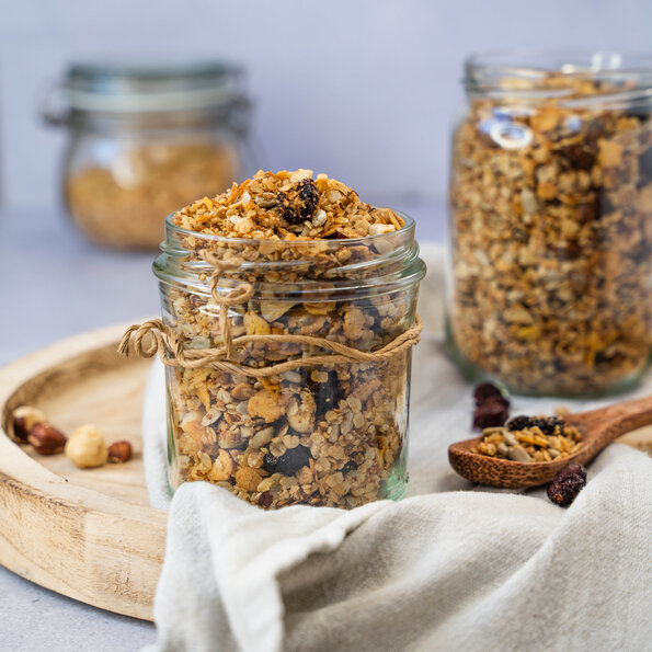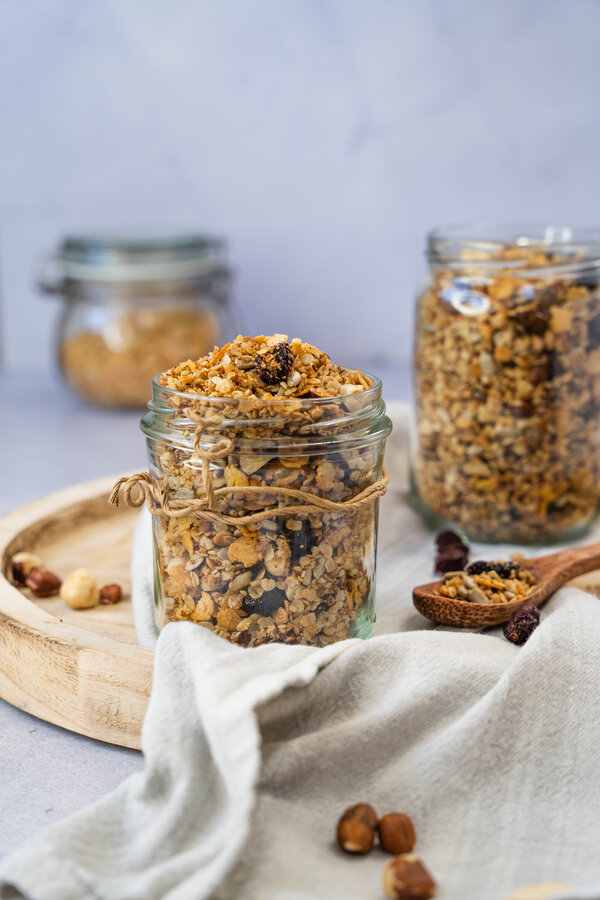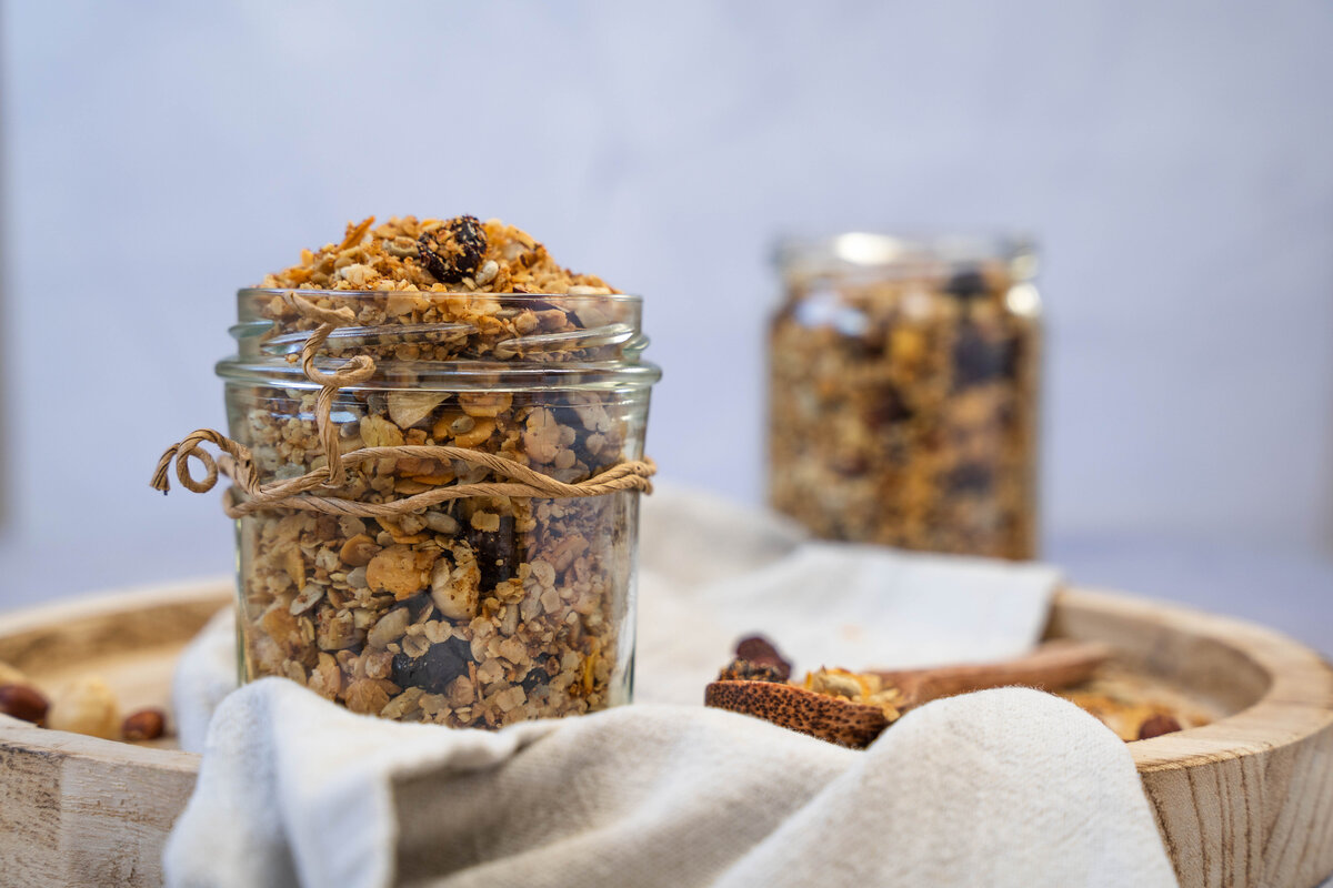 Es wird empfohlen (von der Deutschen Gesellschaft für Ernährung), höchstens 10% der täglichen Energiemenge in Form von Zucker aufzunehmen. Das sind 50g bei 2000 Kalorien. Du kannst es dir nun also ausrechnen: Wenn du 100g Müsli zu dir nimmst, in dem 25g Zucker enthalten ist, hast du schon die Hälfte deines täglichen Bedarfs gedeckt – und das schon am Morgen. Noch besser ist es, du nimmst kaum einen Zucker zu dir. Wenn ein Müsli also 0-10g Zucker pro 100g besitzt, ist das schon viel besser. Noch besser aber, du machst dir dein Müsli selbst. So kannst du genau kontrollieren, wie viel Zucker du dem Müsli beigibst. Dafür eignet sich Granola besonders gut. Es ist knusprig und gesund. Außerdem ist es kein fertiges Produkt und entsteht durch deinen Einfallsreichtum. Das ist doch toll, oder?