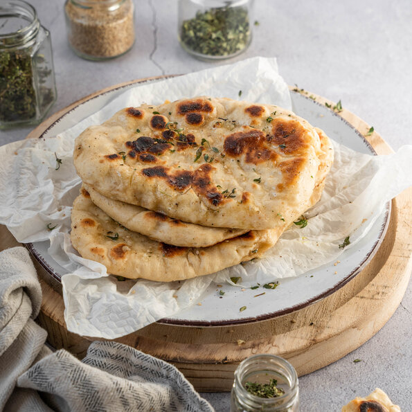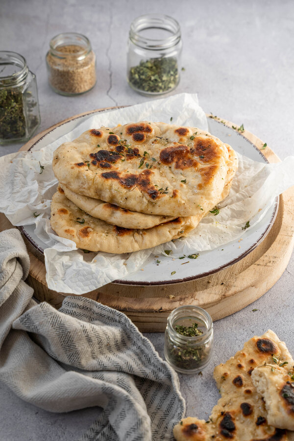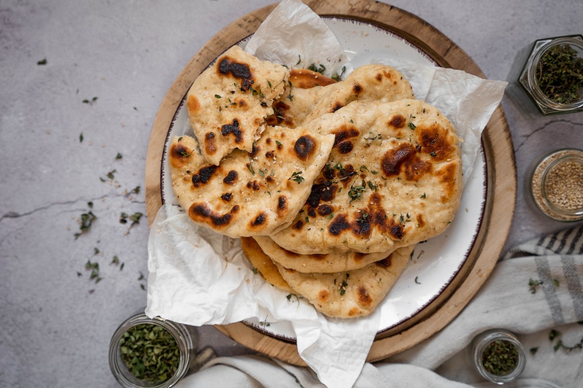 Den Namen hat das indische Brot ursprünglich aus dem persischen – „naan“ bedeutet schlicht und ergreifend Brot. Wenn wir also von Naan Brot sprechen, sagen wir eigentlich Brot Brot. Es nicht nur in Indien verbreitet, sondern erfreut sich auch in Persien, Pakistan, Afghanistan und im Iran großer Beliebtheit. Meist wird es als Beilage zu anderen warmen Speisen wie Curry gegessen. Es dient auch als Besteckersatz – mit dem Brot wird Soße „aufgeschaufelt“ oder die Reste fein säuberlich vom Teller gewischt. Naan wird traditionell mit Joghurt angesäuert. Viele indische Brote sind dünne und flache Fladenbrote, Naan aber wird mit Hefe aufgelockert und bekommt eine etwas dickere Form. Das traditionelle Brot wird an die Wände des Ofens geklebt und auf dem heißen Stein durchgebacken.