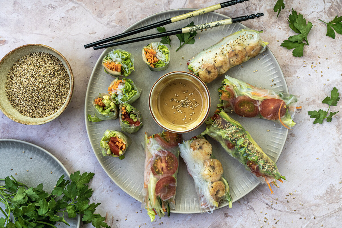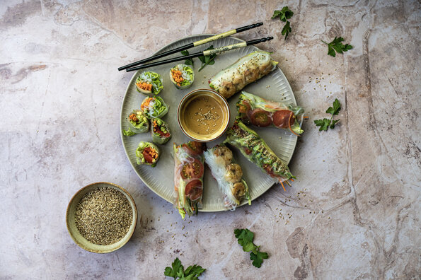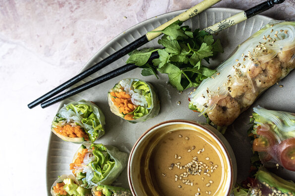 Summer Rolls werden - im Gegensatz zu den etwas bekannteren Spring Rolls - nicht frittiert und sind daher auch kalorienärmer. Die Zutaten sind fast alle roh und frisch. Hier kann aber experimentiert werden. Traditionell werden Summer Rolls mit Shrimps gefüllt, die kann man aber einfach weglassen oder für die vegetarische Variante mit Ei ersetzen. Reis Nudeln sind ein Muss für echte Summer Rolls. Mittlerweile findest du sie in fast jedem Supermarkt. Fülle deine Summer Rolls wie immer du willst! Ich verwende am liebsten dünne Reisnudeln, Salat, Karotten, Gurken und Avocado. Auch Rucola, Tomaten, Ei, Shrimps oder sogar Huhn machen sich sehr gut in dieser gesunden Vorspeise.