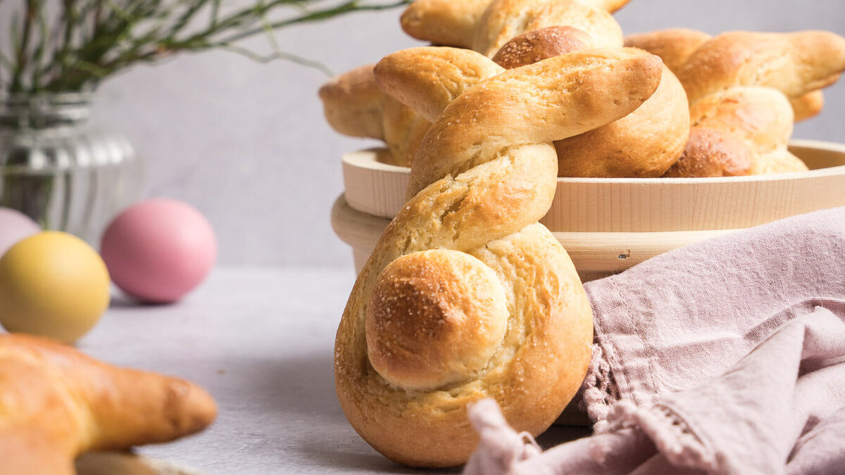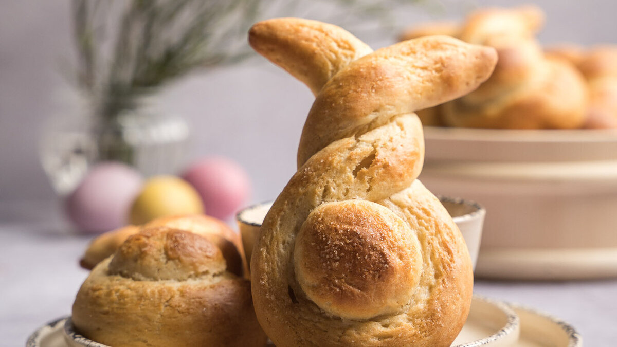 Ich liebe Gebäck – vor allem Hefegebäck. Manchmal muss es aber auch etwas schneller gehen und trotzdem nicht nur gut aussehen, sondern auch lecker schmecken. Dieses Rezept kommt ganz ohne Hefe aus und ich liebe es trotzdem: Der Teig ist zart, geschmeidig und luftig, obwohl er überhaupt nicht gehen muss. Die Zubereitung ist super einfach und unkompliziert. Alle Zutaten werden einfach zu einem weichen Teig verarbeitet, der Teig wird geformt und kann dann schon direkt ins Rohr! Perfekt, wenn man mal eine schnelle Lösung braucht. Und wie süß sehen die Hasen aber auch aus? Wer etwas mehr Zeit investieren möchte, kann kreativ werden: Man kann dem Gebäck Rosinen beifügen, die als Pfoten oder Augen fungieren. Oder man bestreut die kleinen Häschen mit buntem Streusel – ein echter Hingucker! Aber auch ganz ohne viel Schnickschnack geben die Häschen etwas her: Sie machen jedes Osterfrühstück zum echten Highlight.